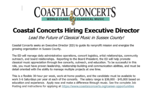 Career Opportunity – Executive Director – Coastal Concerts